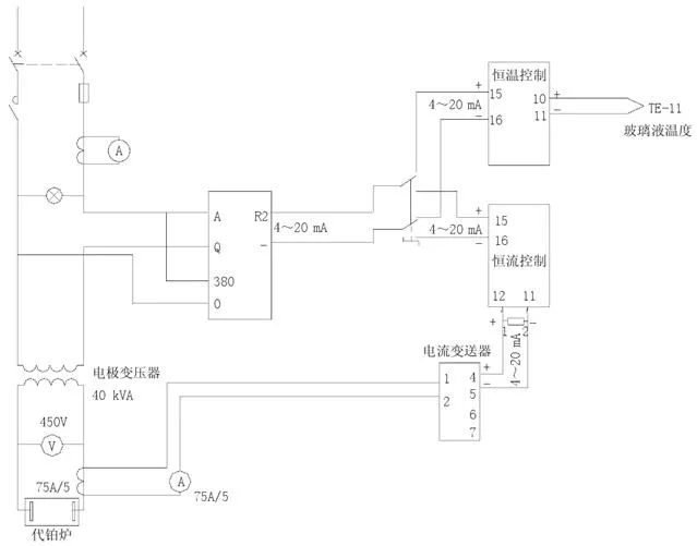 一般來說,坩堝的控制對象主要分為三種:電熔控制、漏板控制、加球控制三個方面。在電熔控制中,人們普遍采用恒流儀表,但是也有一部分采用恒壓控制,這兩種方式都可以。在漏板控制中,人們在日常的生活生產(chǎn)中大多用的是恒溫控制,但是也有部分采用恒溫控制。而對于加球控制來說,人們則更加傾向于間歇加球控制。在人們?nèi)粘5纳a(chǎn)中,這三種不方式已經(jīng)足夠,但是對于有著特殊要的玻纖細(xì)紗來說,這些控制方式仍然是存在一些缺點(diǎn)的,例如漏板的電流和電壓的控制精度不好掌握,漏板的溫度波動很大,所生產(chǎn)的紗線密度的波動很大。或者一些現(xiàn)場應(yīng)用儀表沒有與生產(chǎn)工藝結(jié)合較好,沒有有針對性的從坩堝法的特點(diǎn)來入手制定控制方式。亦或者它容易出現(xiàn)故障,穩(wěn)定性不是很好。以上種種例子表明在生產(chǎn)生活中需要精密控制,認(rèn)真研究,努力提高玻璃纖維制品的質(zhì)量。2.1.1控制技術(shù)的主要環(huán)節(jié)2.1.1.1電熔控制 首先要明確保證流進(jìn)漏板內(nèi)液體的溫度保持均勻穩(wěn)定,并且保證正確合理坩堝的結(jié)構(gòu),電極的布置,加球的位置和方式。所以,在電熔控制中,最重要的是保證控制系統(tǒng)穩(wěn)定。電熔控制系統(tǒng)采用智能的控制儀、電流變送器和電壓調(diào)整器等,根據(jù)實(shí)際情況,采用4位有效數(shù)字的儀表來降低成本,電流則采用有獨(dú)立有效值的電流變送器。實(shí)際生產(chǎn)中,根據(jù)效果,在采用這個系統(tǒng)來恒流控制中,在較為成熟合理的工藝條件基礎(chǔ)上,流入液槽的液體溫度能夠控制在±2攝氏度之內(nèi),所以經(jīng)研究發(fā)現(xiàn)它的可控制性較好,已接近于池窯拉絲工藝。